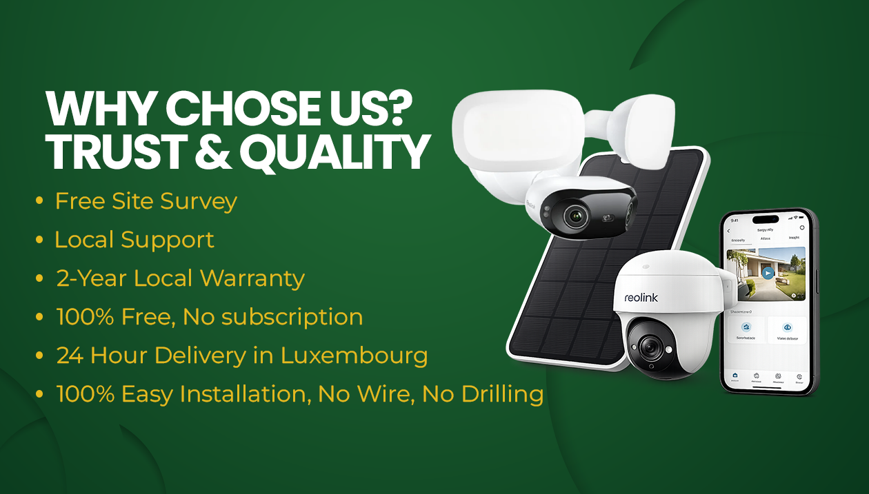 Not sure what you need? Call our Luxembourg-based support for a Free Site Survey. We’ll visit your location and hand-pick the best cameras to keep your home or business safe.